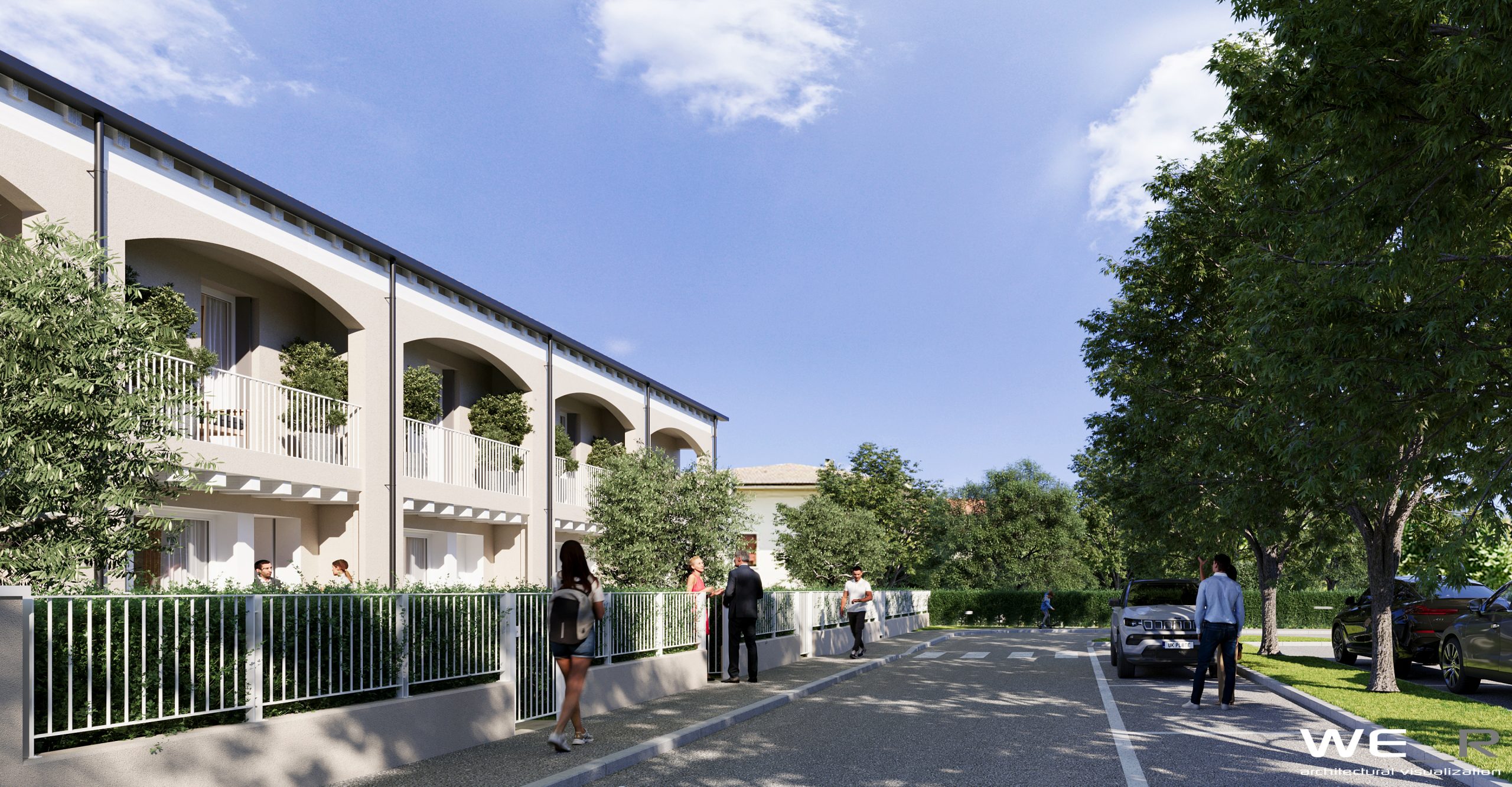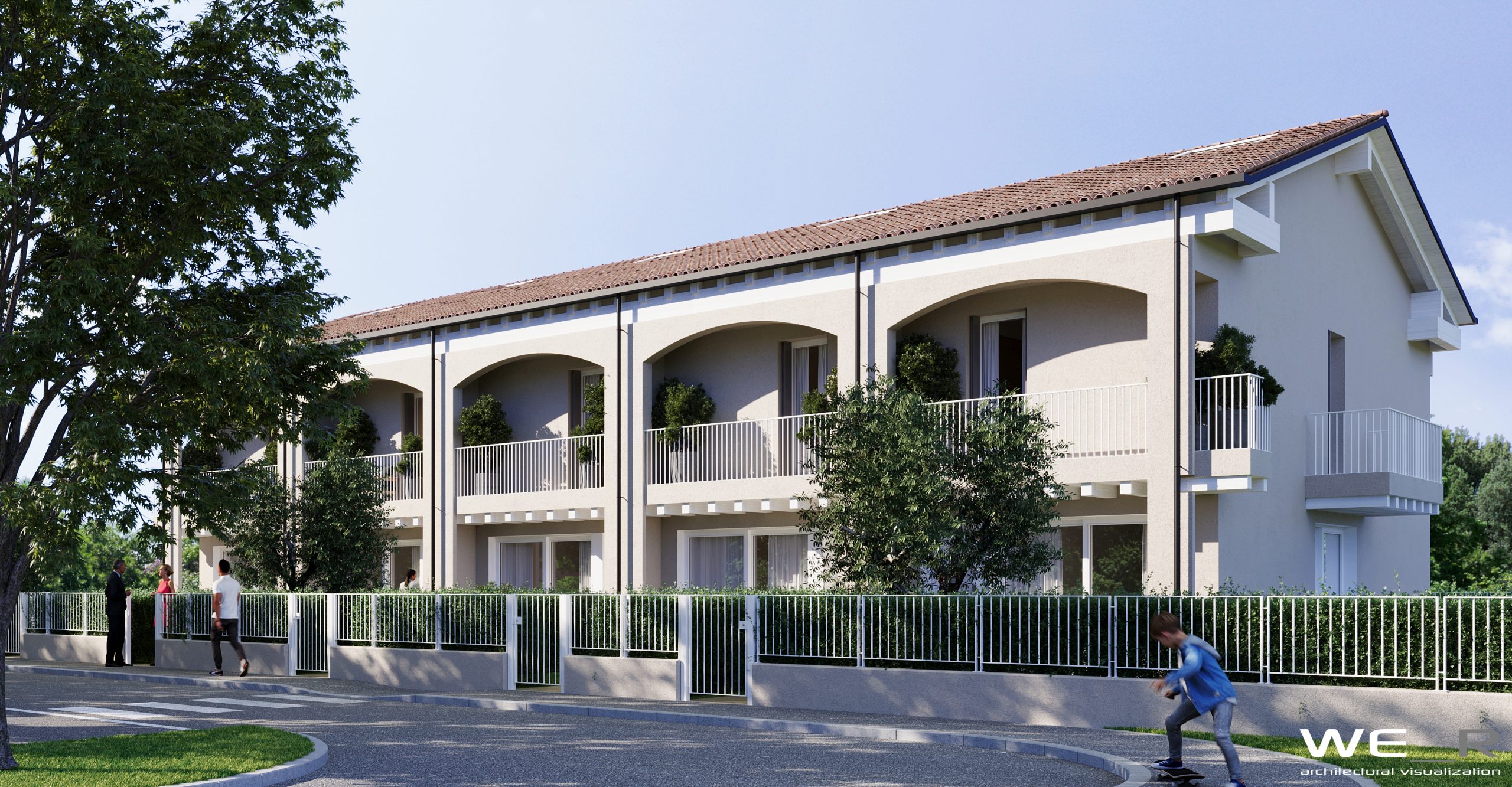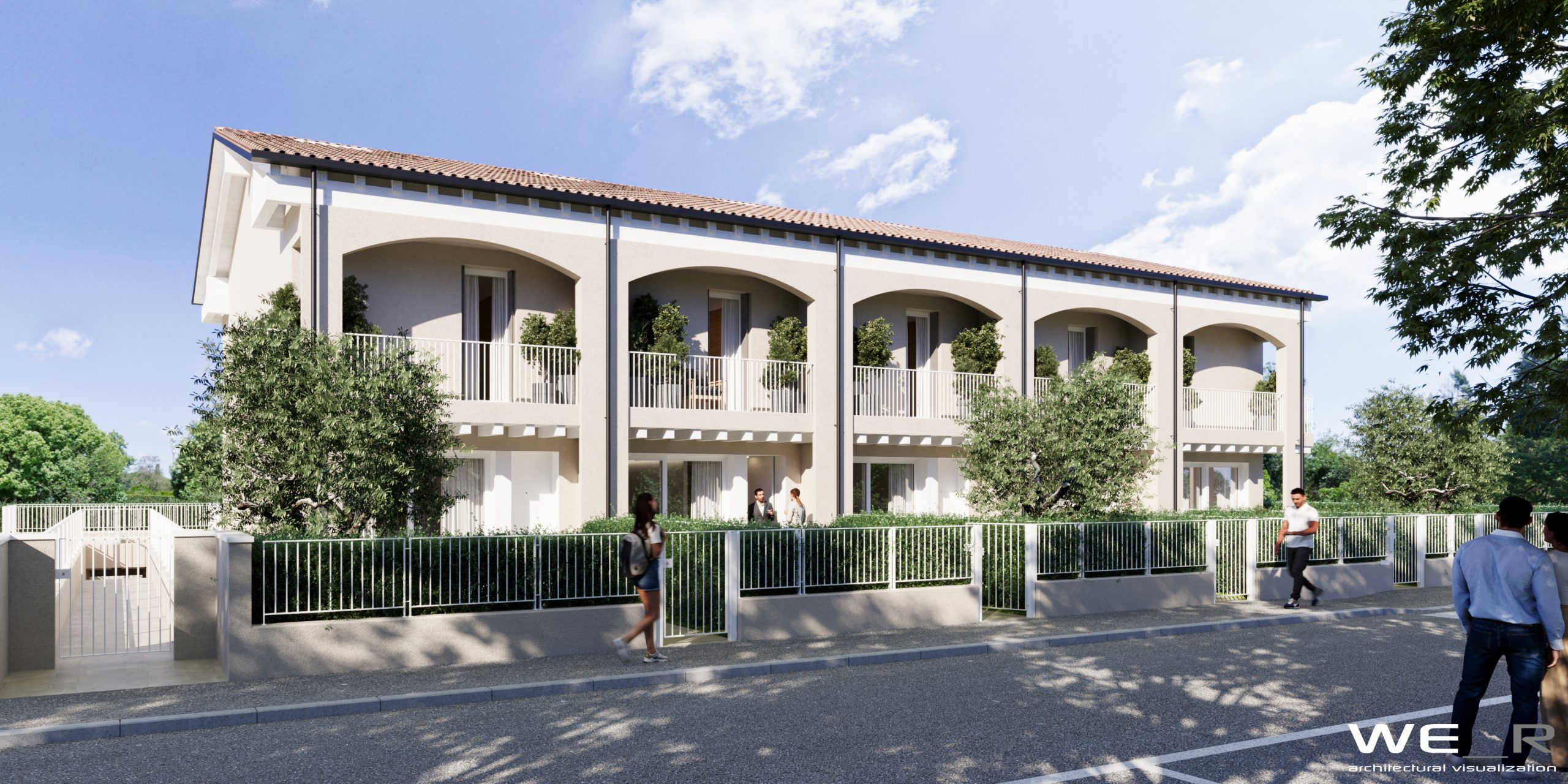 Le residenze sono composte da 5 unità abitative disposte a schiera, al piano terra sono organizzati gli spazi della zona giorno e al primo piano abbiamo 2/3 camere da letto ed un generoso bagno.