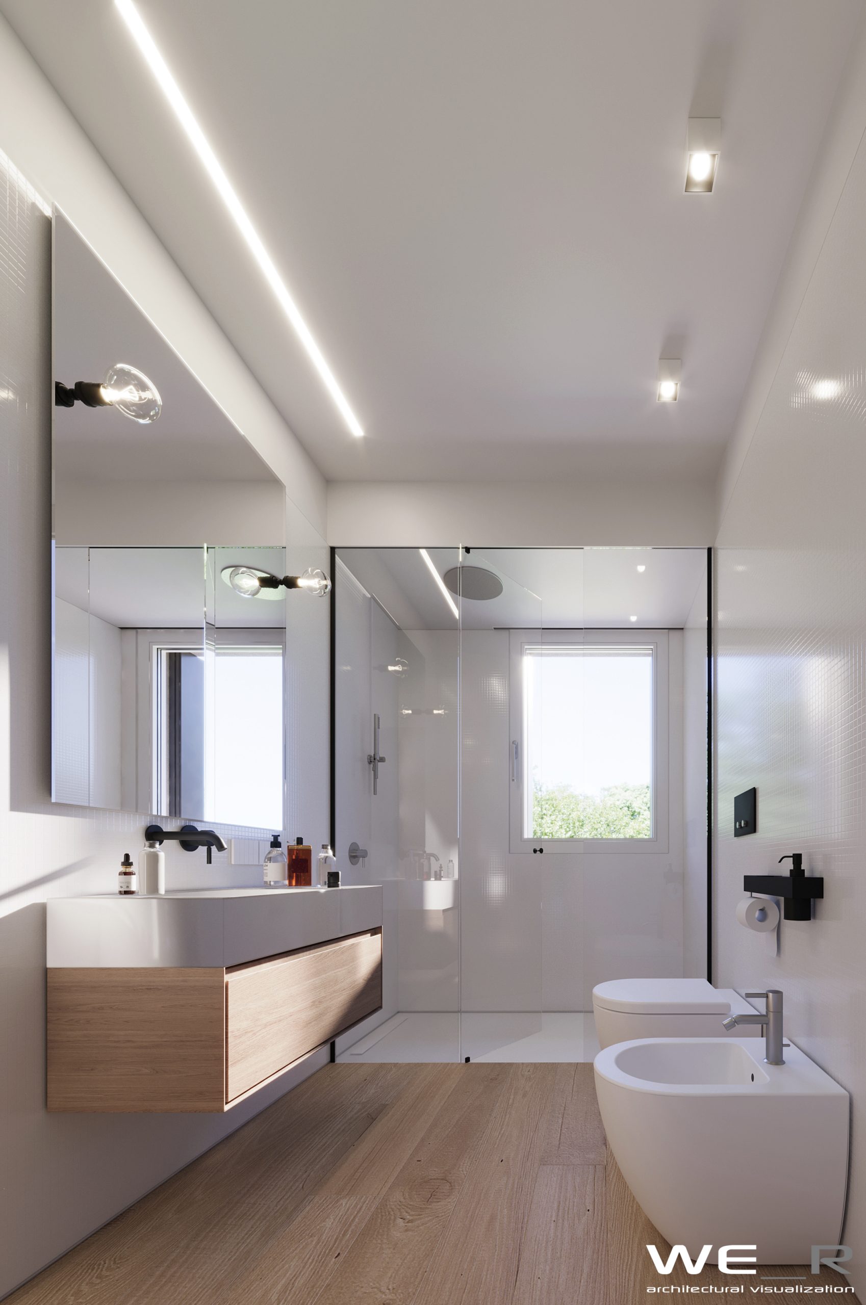 Nel piano interrato troviamo spaziosi garages con 2 posti auto per ogni unità e possibilità di ricavare una zona deposito attrezzi.